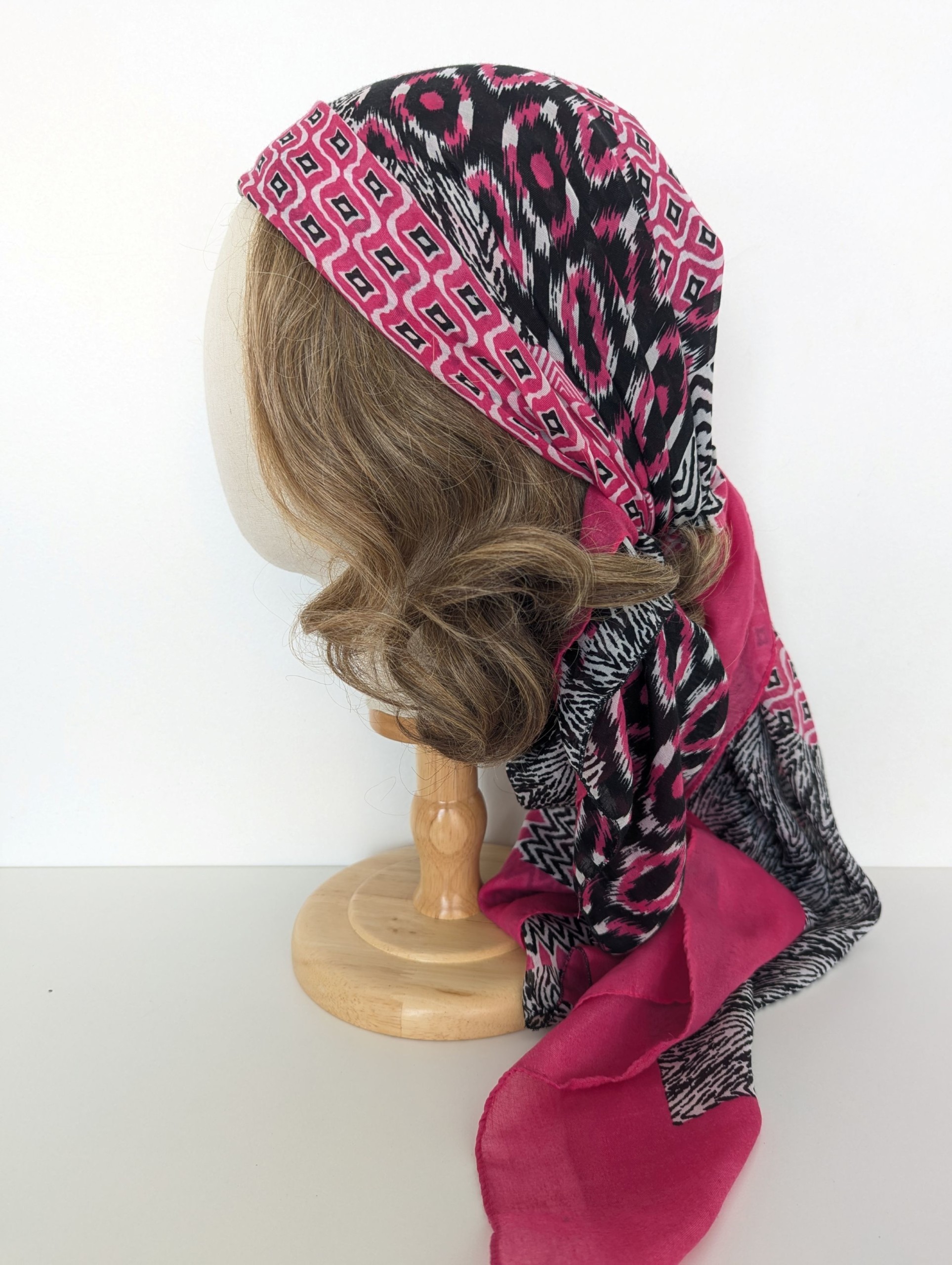 • Glissez doucement le foulard vers l’arrière de votre tête, en vous assurant que vos cheveux sont bien enveloppés à l’intérieur.