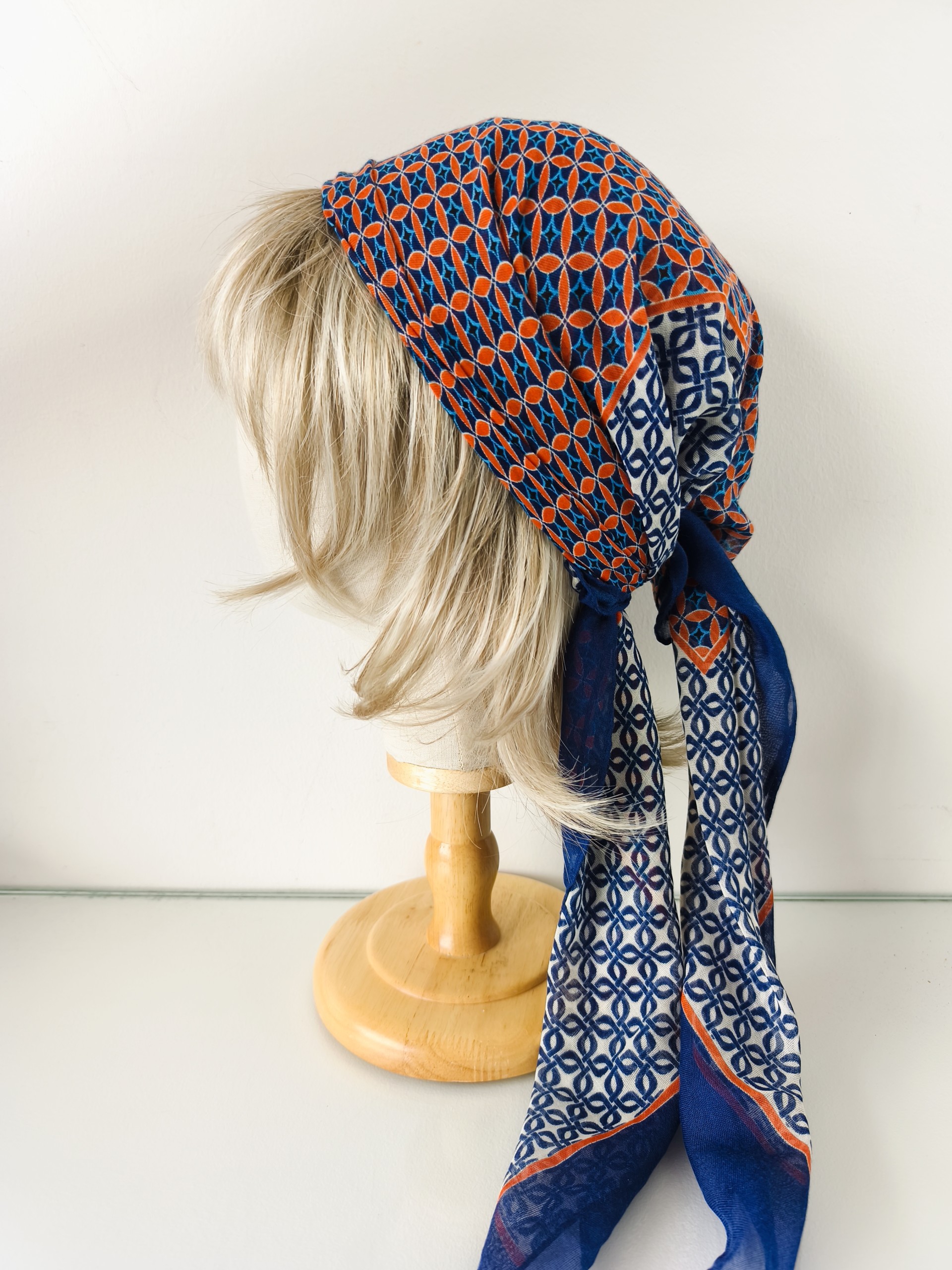 sur la tete en fleur (devant) ou sur la tete en corsaire (derrière) ou en crop top en mettant le bandeau autour du cou et en nouant le foulard dans le dos